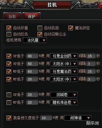 2、通过自动设置生命值和魔法值,接着查看背包中有没有药品。在需要的时候可以直接从背包中获取,节省了时间,又可以避免药品供给不及时带来的困扰。