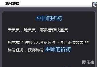 称号要求要(连续五天塔罗牌占卜是正位图)所以只要你的塔罗牌占卜,连着五天都是正位图,就绝对可以得到这个称号。