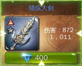 地牢猎手4战斗大师武器剑之错综大剑介绍,这就是有属性的装备好处,虽然13级的装备但是比刚才21级的还要好,有时候需要用到火系的伤害,还必须得买。