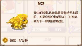 治愈系神龙养成手游《育龙高手》在培育系统设定别出心裁的无限定玩法,多系神龙无限定随意组合,各种混合神龙等你培育,神龙养成趣味性上升,玩家更有机会打造史上最强神龙。今天就来为给位牧场主介绍一下” 金龙”能力。姓名:金龙属性:钢铁+闪电金币产量:8/分钟