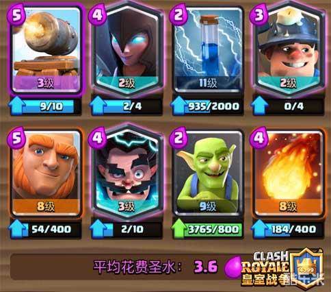卡组是在top上看卡组时发现的,使用者的炮车就四级(怎么是四级呢?)应该是在打挑战,抄来用了五把,感觉不是很假,但肯定有改进空间。