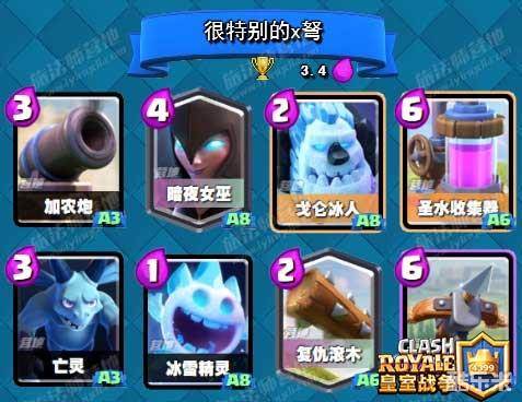 同样是进了天梯前十的一套x弩。构筑非常的有意思,放弃双法术带了个采集器,为了降费建筑选则了加农炮而非常见的地狱塔,输出兵种则用的是暗夜和小苍蝇。玩了一轮感觉强度意外的高,很适合现在这个环境。注意这套建筑较多,记得注意建筑的布局。