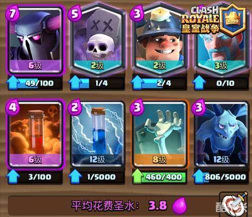 3.突然死亡模式。这时,皮卡石头都可以用来防守,吸收伤害,能反打就反打。注要利用矿工+毒药+万剑+小电打残血塔(骷髅召唤的使用一定要谨慎),其余卡牌均用来防守,越到最后越要稳住,在把握好牌序与伤害后,骷髅召唤可以用来防守,往往到最后就是比的谁稳,拉扯等细节一定要做好,咱们的毒矿挖过去还是比较不讲道理的。