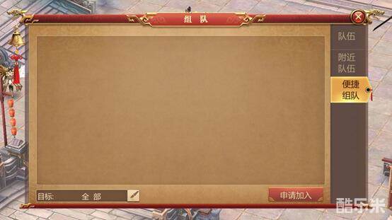 玩家也可以选择加入别人的队伍,在组队界面,选择附近服务,可以查看附近所有的队伍列表,选择其中合适的点击“申请入队”即可。也可以通过左下角的目标栏,选择合适的任务,缩小寻找范围。玩家还可以通过快捷组队按钮来快速找到合适的队伍。