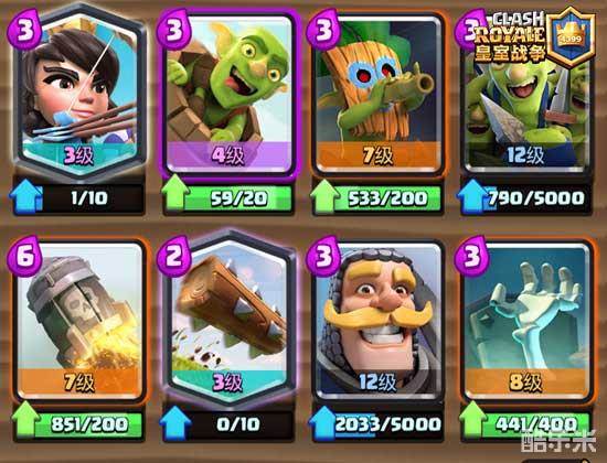 可替换单卡:猪 桶 地狱塔 团伙,这几张基本是固定不变的。小电-滚木,看等级和个人喜好。火箭-火球-毒药,还是看卡等和个人喜好,或者干脆带单法术也可以。
