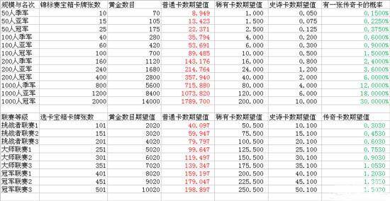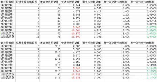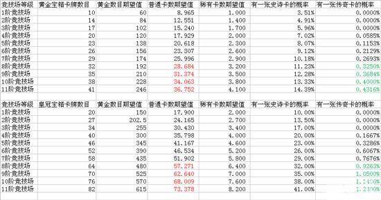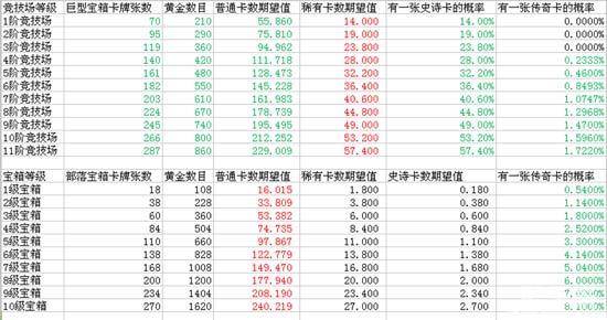再强调一次,对于部落宝箱、三种挑战锦标赛和自定义锦标赛的宝箱,是按最高竞技场等级计算传奇卡概率,如果是在8阶或更低的竞技场,