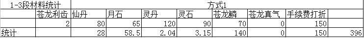 花时间 存利齿,兑换1段然后升苍龙8段成本:3677J+42个利齿+22个高武