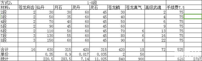 那我就算7-8用方式2来升,7-8方式2比方式1多了1个齿,3个真气,22个高级武魂