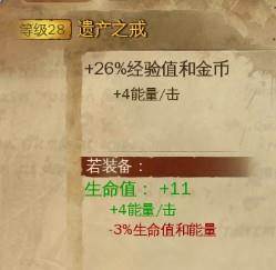 地牢猎手4剑圣装备戒指之遗产之戒介绍,这是一个很好的戒指,符文属性很适合剑圣,不过就是贵了点。有钱的玩家可以考虑买下。