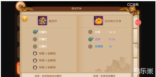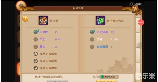 3.一件神器上不能拥有同样类型的属性,相同属性吸收时候,允许高属性替换低属性。比如伤害2替换伤害1.
