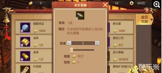 其三是圣火卷轴,拥有该卷轴行会成员可免费进入当日的焰火屠魔。该道具对于大伙来说十分重要,因为在焰火屠魔中不仅可以入手高级装备和高级技能书,还能拿到大量的经验。对于中后期的大伙来说这是一个理想的战力提升之地,因此每天焰火屠魔大伙都一定要参与。