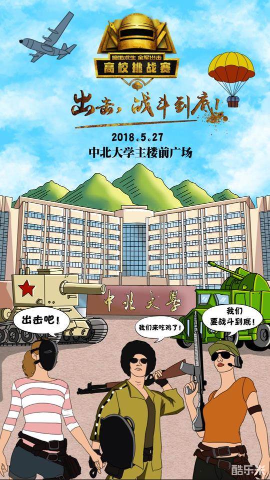 山西站的比赛将于5月27日下午2点在中北大学主楼前广场正式开赛!蓄势待发的全军出击战场战火再燃,枪林弹雨,险象环生,超乎你想象的全真体验,超大逼格的出击活动,山西高校的击友们,你还在等什么?赶紧报名参加吧!最强出击王的称号就等你来夺,巨额奖励等待高玩加冕为王,大吉大利,全军出击!