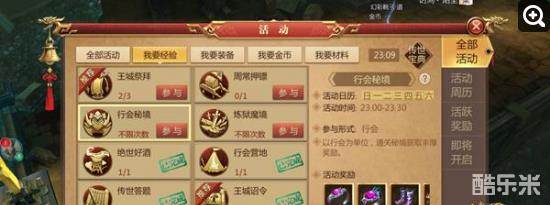 “行会秘境”活动是行会成员每日参加的重要活动之一,行会秘境持续时间30分钟,自定义设定开启时间是会长职权之一。行会成员直接参与活动击杀秘境内的怪物可获得丰厚的奖励。