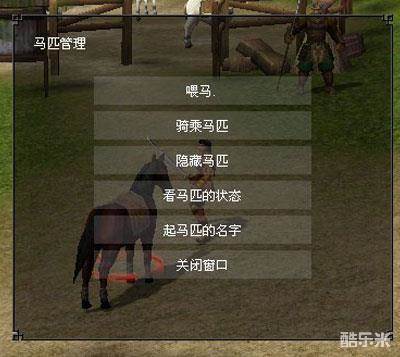3、马召出后自动为跟随状态,用鼠标左键点击“马匹”,弹出选择菜单: