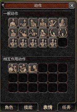装备了“热情的面具”后,点选角色属性栏中的“表情”项,选择相应的动作图标即可实现感情表达。一般动作包括鼓掌、欢呼、跳舞等,而相互作用动作包括接吻、热吻、耳光等,需要两位都装备了“神奇面具”的玩家一起做,才能够完成。