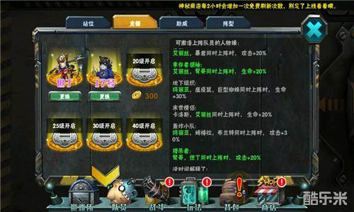 这个时候支援系统就派上用场了!支援里的站位和上阵的站位是分开的,也就是说你可以把能力平平但是能激活组合的角色放到支援站位里,把真正有实力的强力角色放到上阵站位里。这样既不会浪费宝贵的上阵位置,又能激活上阵角色的人物组合!