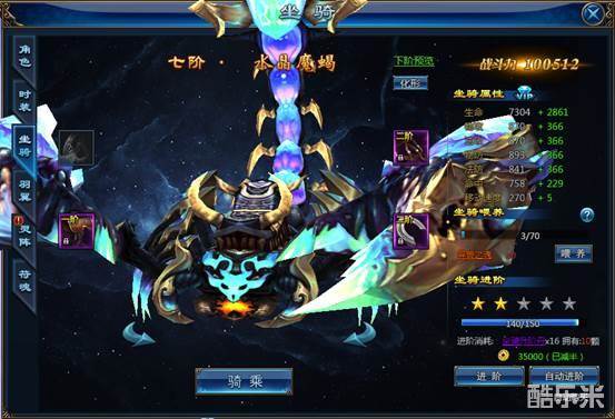 1、消耗坐骑进阶丹和金币可进阶坐骑,提高坐骑系统给角色带来的属性加成,目前最高开放到十阶;
