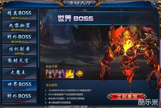 1、世界BOSS刷新期间进入场景即可参与讨伐世界BOSS;