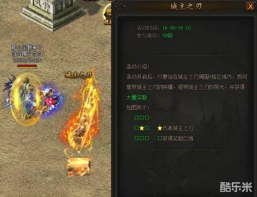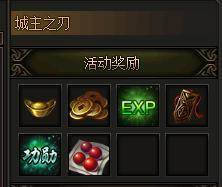 每天16:00-16:10分,玩家可以在土城参加城主之刃活动,只要站在城主之刃周围8格范围之内,就可以获得大量经验、功勋、BOSS积分、金币等奖励。