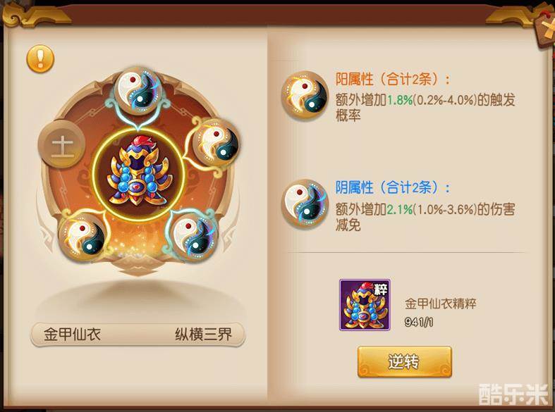 1、当法宝具有五行阴阳属性后,可进行属性逆转。