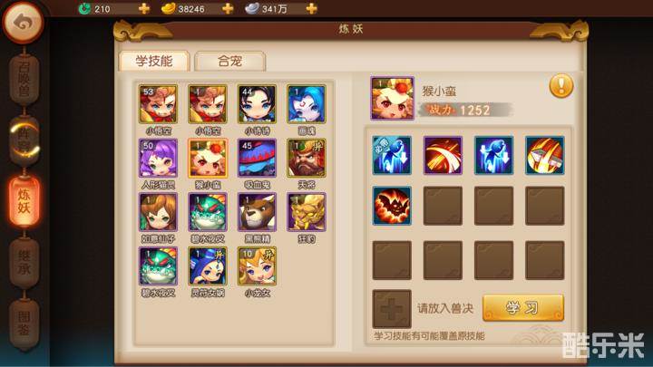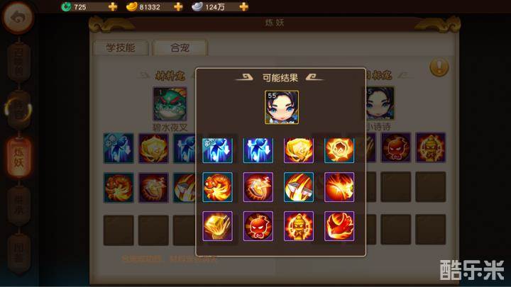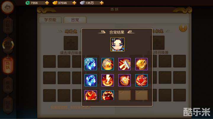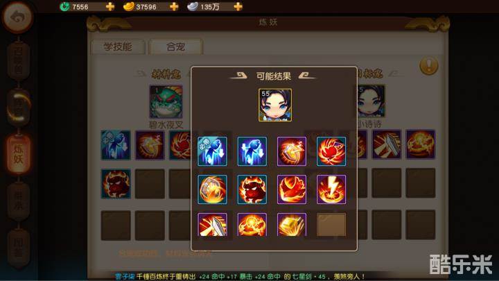现在就要拿出金色宝宝,打书盖掉必带技能(当然是拿便宜的技能书了) 猴子除外! 当你盖掉必带技能就可以在炼妖,合宠 里面放入辅宝宝(材料宠)和主宝宝,然后预览一下,看看有没有重叠的技能(盖书的时候就要注意,千万别打重复技能)