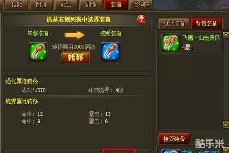 仙宠装备强化转移与境界转移功能开放!获得更好装备的玩家,可以安心将已经强化过的装备属性转移到更强的装备之上了!