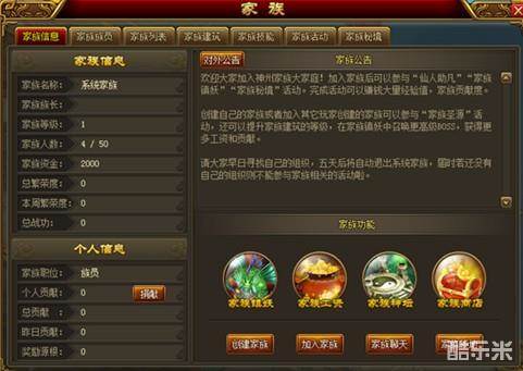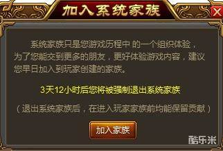 (6)系统家族状态下,玩家可以创建新家族,或加入其他家族。