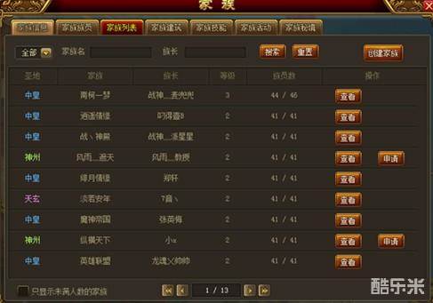 (5)系统家族不设族长、副族长,所有玩家在家族中的官职都为族员。