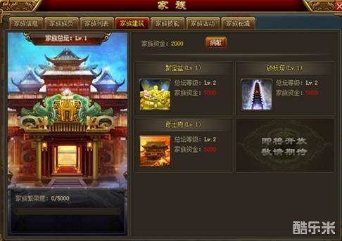 (7)系统家族默认1级,建筑默认一级,不可升级。