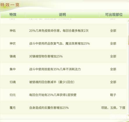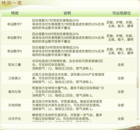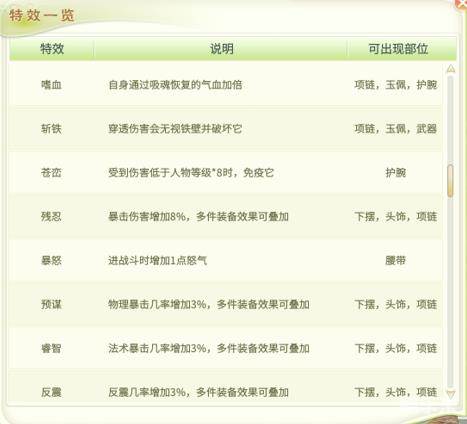 《灵山奇缘》中装备会附带有特效。以下为大家整理出灵山目前所有的装备特效,方便查阅。