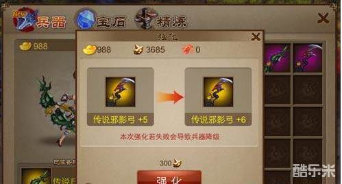 在兵器升级的过程中,最令玩家心疼的莫过于目睹兵器强化破碎的画面了。兵器强化等级越高,基础附加属性也就越多,兵器技能也越强大。但强化皆有风险,当兵器强化等级超过一定阶段时,再强化可能导致失败或破碎消失。此时,就需要兵器护符加持。兵器护符可通过挑战兵械库,获得黄金宝箱,即有概率取得。