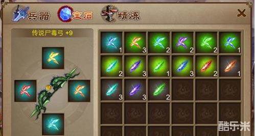 除强化外,宝石镶嵌也能增强兵器属性。挑战兵械库房间或进入宝库都可获得宝石,用一定数量的品质宝石可以合成高品质的宝石,将宝石镶嵌于兵器上,除了帮助兵器提高属性外,还能使玩家角色的战斗力得到提升。另外,10级以上的传说兵器还可通过精炼额外追加兵器的基础属性,追加的基础属性也会被算进强化的附加属性中。