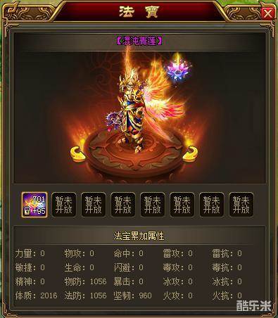 法宝鉴定后即可装备,为人物附加各种基础、特殊属性,并可通过“法宝升级”提升属性