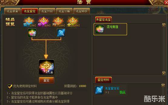 a. 【法宝 – 法宝鉴定】界面,消耗“法宝鉴定石”即可鉴定法宝属性