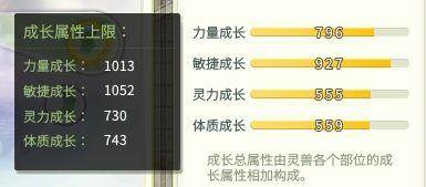 首先来科普下成长到底是什么,成长实际上就是灵兽所有部位对应属性的总和。例如力量成长,就是灵兽各部位的力量数值的总和。