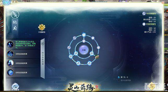 玩家每次升级可获得修为+1 ,用于激活和修炼灵穴,鼠标左击小圆点即可激活和修炼灵穴。