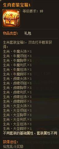 b. 家族排名奖励:生肖宝箱碎片(总积分排名前10的家族获得,发放到家族祭坛,由族长分配;可在【炼制-仙宠道具-仙宠生肖套装】处炼制为生肖套装宝箱1)