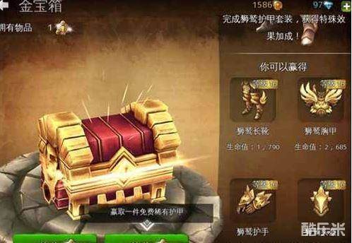 在我们刷完图,打过永恒之战22波,解锁了103狮鹫套装之后,我们再回来进行抽奖。这个时候宝箱中的奖品,就会变成103级的狮鹫套装了。这样我们就可以直接免费获得一件套装部件了,这是非常不错的,比拿16级的狮鹫部件好多了。