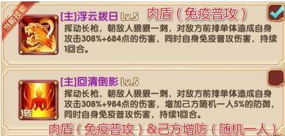 首先看主动,一转后的两个主动可以看出侍卫有两个方向选择,第一种【回清倒影】就是前排侍卫肉的选择,只不过增添了一个给队友增防的辅助功能;第二种【虎啸龙吟】在我看来倾向辅助输出,侍卫一直都是肉盾,【虎啸龙吟】则是让肉盾去蹭输出,给前排目标减防,给队友提供输出环境,目前版本都是后排打法,如果是打前排的话,可以略微考虑一下。