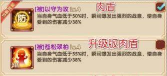 再来看被动技能,第一种二转被动就是自身减伤的条件略微降低,没啥好说的;再来看第二种,给己方气血最低,正常玩家的阵容中气血最低应该是后排输出位,那么这个就可以起到保护后排输出的作用,同样是往辅助方向发展。