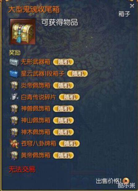 剑灵大型鬼魂收尾箱开出暴风碎片 无法交易
