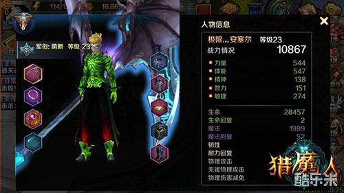 23级的角色在《猎魔人》中其实只是中等级别,不过此时的游戏角色已经十分炫酷,虽然只收集到两件战士套装,套装属性还有提高空间,但是这把强化8级的橙色武器浩劫有效的提升了角色的攻击力和属性,特别是附加的特殊效果可以增加乱狮子和刃蜘蛛两个技能等级,并提升2%物理暴击率,使得角色输出能力明显提升.