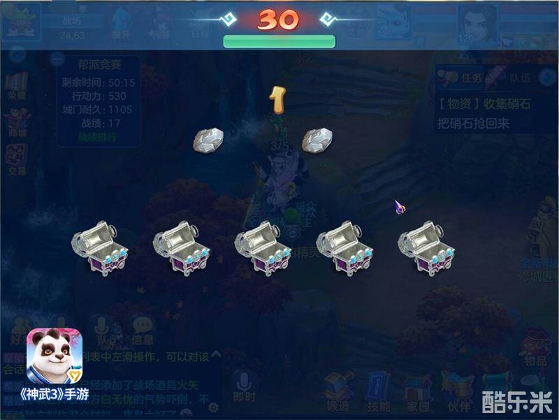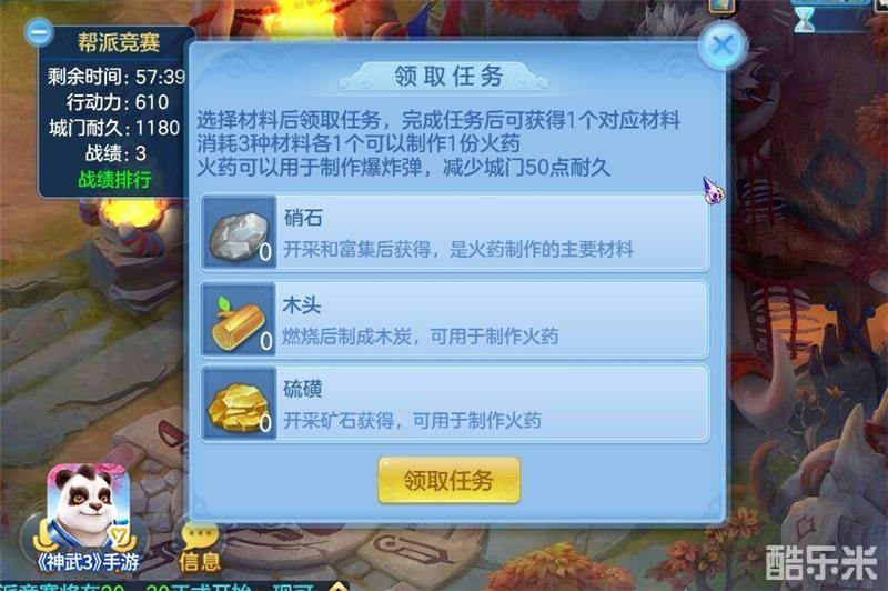 (2)防守方则组成3人及以上队伍在己方军需官处领取和完成军需任务来获取对应的材料制作修城材料。