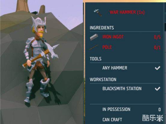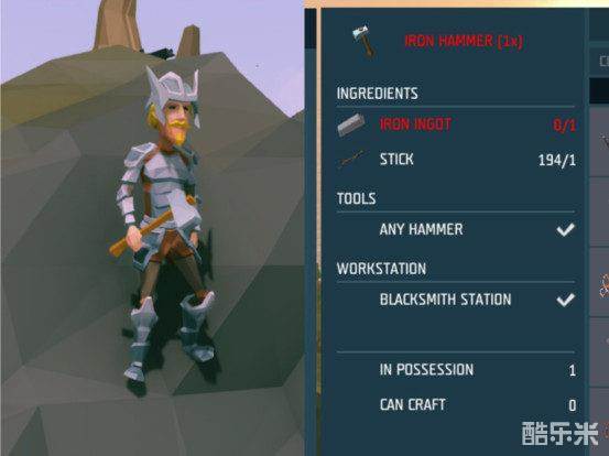 铁锤,配方1铁矿+1树枝,以岛上最容易见到的狼作为对手,铁锤至少需要2下才可以击杀狼。
