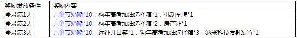 活动内容:活动期间,队长大大可以在精彩活动面板查看并参与开启的相关活动,即可获得道具“儿童节奶嘴”,一定数量的儿童节奶嘴可以兑换不同档位的奖励。