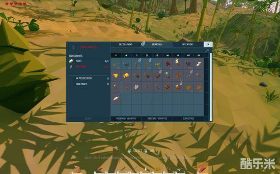 首先对于中国玩家而言游戏最大的障碍或许就是目前并没有汉化版本,想要知道各种采集物的具体名称除去观察外形以为的唯一办法就是查字典翻译了,这一点上大大增加了国服玩家的游戏难度。其次游戏中并没有其余游戏中详细到连怎么走路都教给你的新手教程,游戏唯一的教程就是告诉你那个键是拾取了游戏中拥有数千种交互物品可以采集,但是在采集之前并没有明显的标示,需要玩家记忆物品的采集形态,比如常规黄土地玩家可以获得黄土,而在白土地上玩家通过铁锹可以获得铁矿,粉红土地上可以获取黏土等等,游戏中并不会明确表示玩家所在土地的或许物品,一切需要玩家的自行探索。