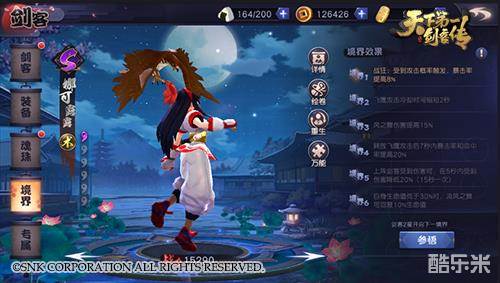 集齐一定数量的碎片后,可以为剑客提升星级,每提升一级可解锁一层对应境界,每个境界能激活一个特殊效果。如娜可露露的境界1可激活战狂:受到攻击概率触发,暴击率提高8%。同一条境界有白绿蓝紫金不同颜色,金色属性最高,使用参悟道具可以重置境界等级,因为参悟道具获取渠道比较少,最好在参悟时进行取舍,不要盲目追求高属性。