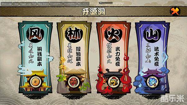 开源洞副本分为四大类,铜钱副本、经验副本、武力免疫、法术免疫。