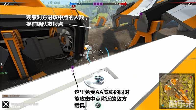 如果你足够肉,对方一两个飞行载具无法快速解决你。那你可以直接站在中点,逼迫对方下来跟你抢点。对方不下来,那就抢下中点后稍微拉开距离。对方下来抢点了,就是你击杀飞行载具的机会了。