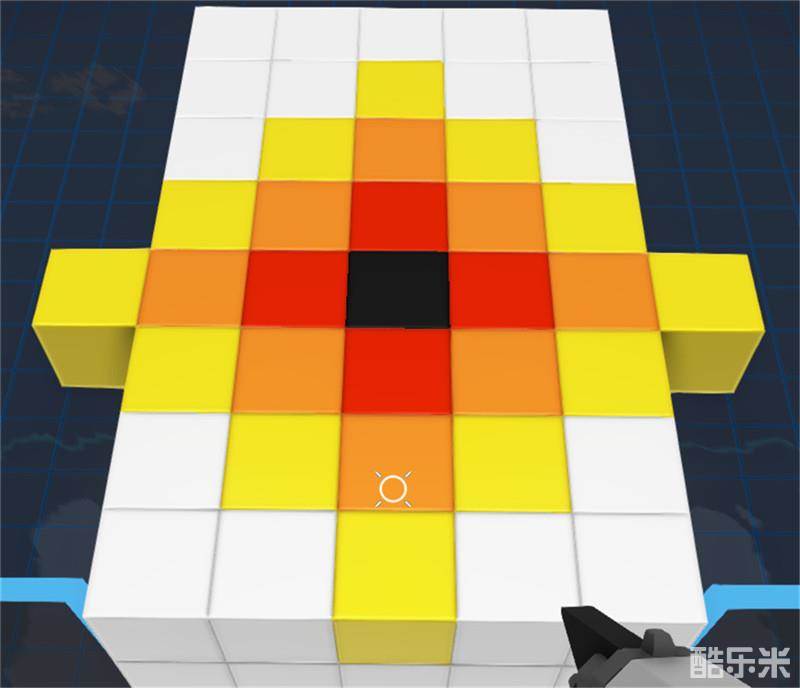 如图所示,假设我们的武器放在黑色方块上,而根据伤害传导的距离,我们把黑色方块边的方块分为黄色(三格),橙色(两格),红色(一格)。